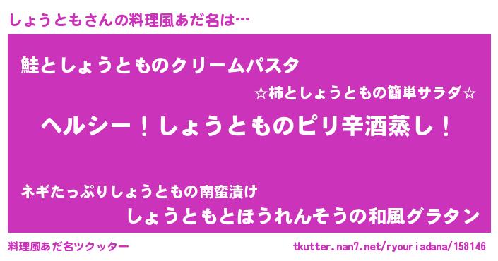 | 男性向けラノベタイトル風あだ名 | 『Re:しょうともから始める異世界生活』 |