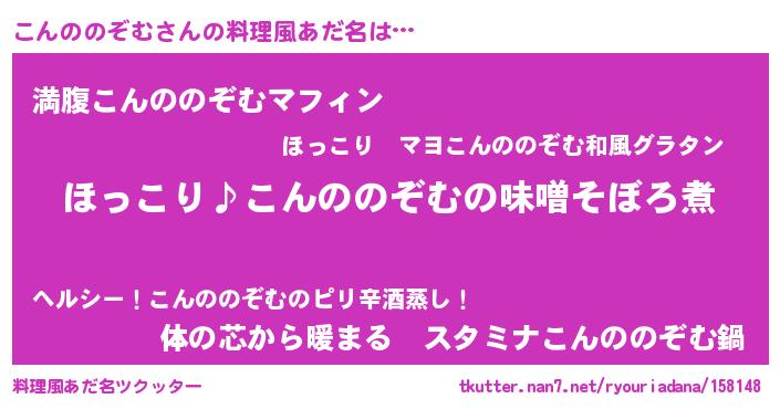 | 可愛いあだ名 | 『こんこん』『こんののぞむママ』 |