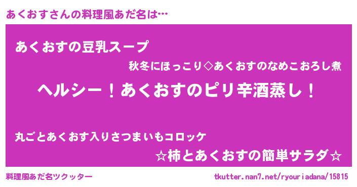 | 男性向けラノベタイトル風あだ名 | 『Re:あくおすから始める異世界生活』 |