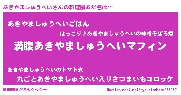 | 意味不明あだ名 | 『永久保存あきやましゅうへい』 |
