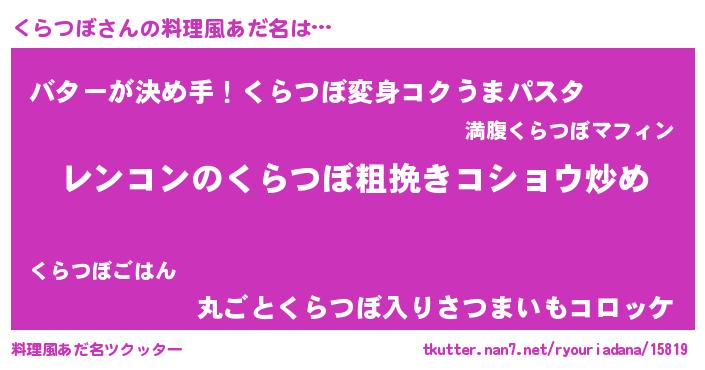 | 意味不明あだ名 | 『自称くらつぼ』『永久保存くらつぼ』 |