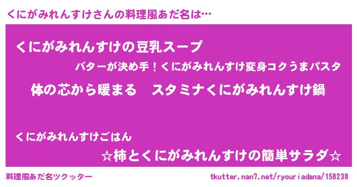 | 男性向けラノベタイトル風あだ名 | 『やはりくにがみれんすけの青春ラブコメはまちがっている 』 |