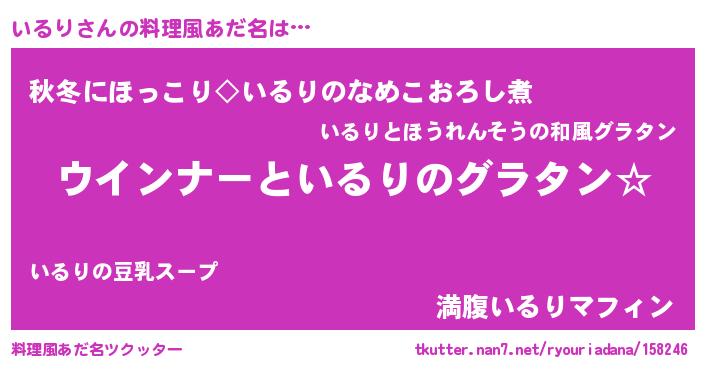 | 意味不明あだ名 | 『いるりフォーエバー』『永久保存いるり』 |
