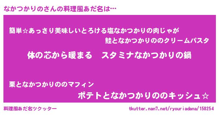 | 男性向けラノベタイトル風あだ名 | 『やはりなかつかりのの青春ラブコメはまちがっている 』 |