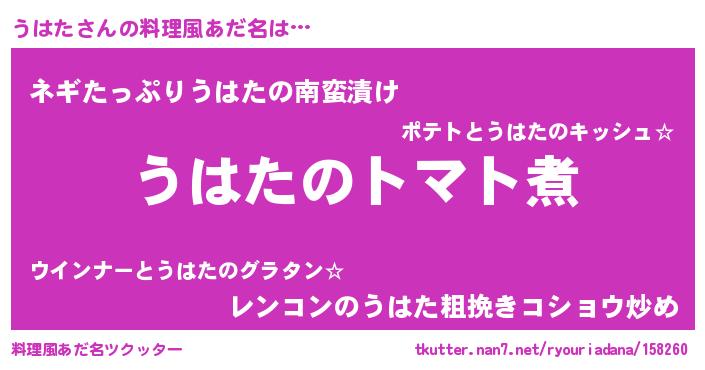 | ヒーロー風カッコイイあだ名 | 『正義の使者うはた』『スーパーウハタ』 |