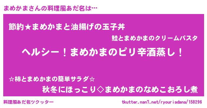 | 胡散臭い通販商品みたいなあだ名 | 『テレビで話題の高麗人参…その名も「まめかま」』 |