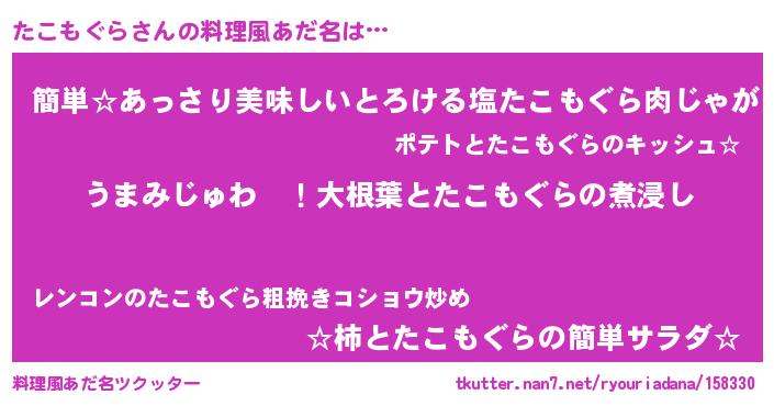 | ヘコむあだ名 | 『酢こんぶ』『たこもぐら(遠い目)』 |