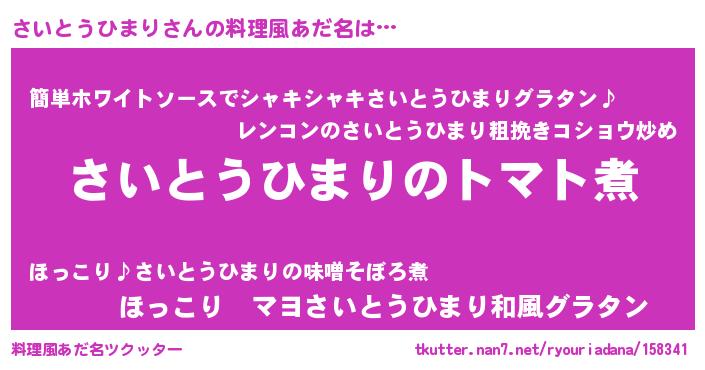 | ポケモン風あだ名 | 『サックウザ』『ヒサイトウヒマリ』 |