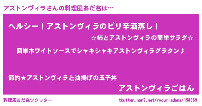 | 女子向けラノベタイトル風あだ名 | 『アストンヴィラ様がみてる』 |