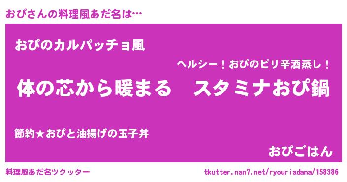 | 胡散臭い通販商品みたいなあだ名 | 『幸せが訪れる高級そうな壺…その名も「おぴ」』 |