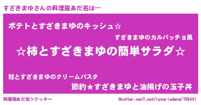 | 男性向けラノベタイトル風あだ名 | 『緋弾のスザキマユ』『すざきまゆの憂鬱』 |