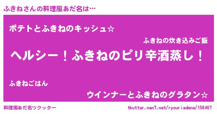| 意味不明あだ名 | 『自称ふきね』『とにかく怪しいふきね』 |