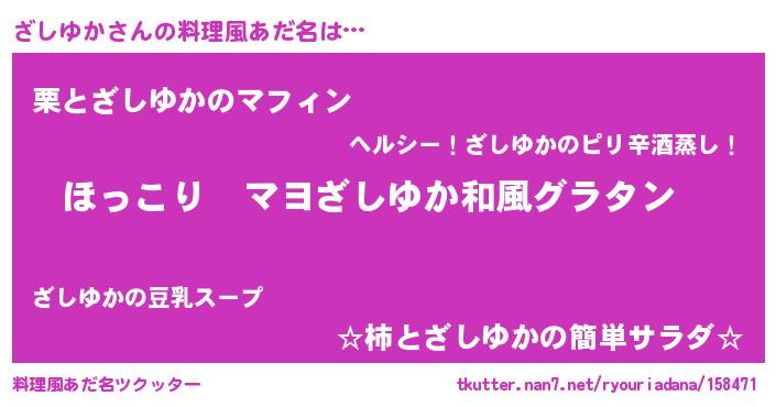 | ヘコむあだ名 | 『ざしぷりん』『牛乳』『ざしふぇ~』 |