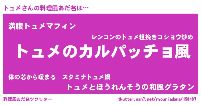 | 女子向けラノベタイトル風あだ名 | 『トュメが死なない童話 林檎のトュメの診療簿』 |