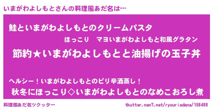 | 男性向けラノベタイトル風あだ名 | 『いまがわよしもとの憂鬱』 |