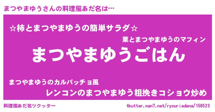 | 胡散臭い通販商品みたいなあだ名 | 『テレビで話題のアガリクス…その名も「まつやまゆう」』 |