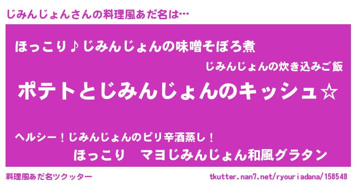 | 女子向けラノベタイトル風あだ名 | 『じみんじょんの卵を拾いまして』 |