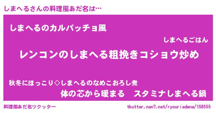 | 意味不明あだ名 | 『自称しまへる』『しまへるフォーエバー』 |