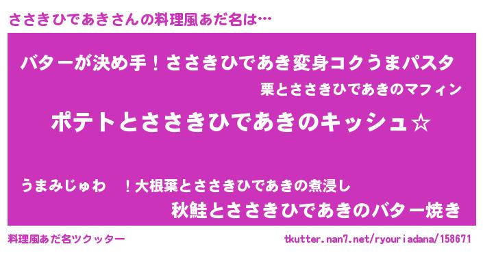 | ヘコむあだ名 | 『ささっぺ』『ささきひであき(笑)』 |