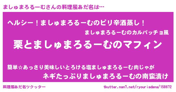 | 胡散臭い通販商品みたいなあだ名 | 『ガンによく効く高麗人参…その名も「ましゅまろるーむ」』 |