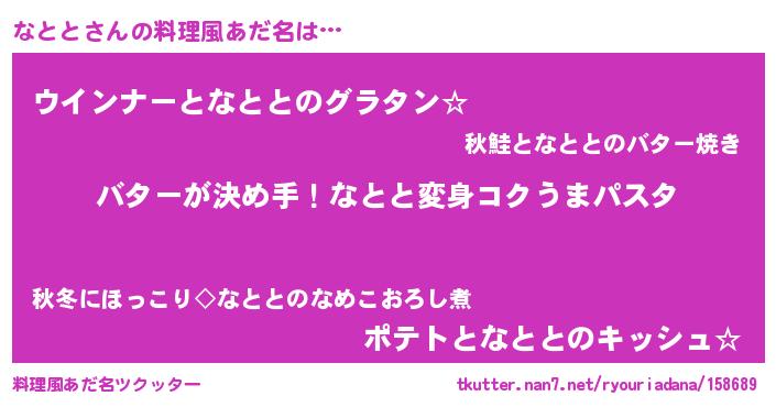 | ヘコむあだ名 | 『豆乳』『なとっぺ』『なとと(笑)』 |