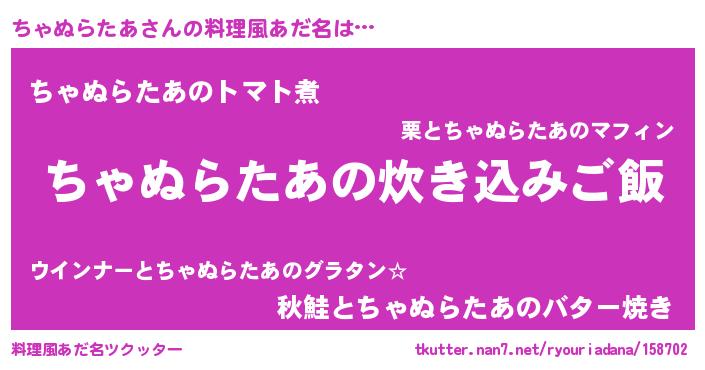 | ヒーロー風カッコイイあだ名 | 『愛の使者ちゃぬらたあ』『仮面チャダー』 |