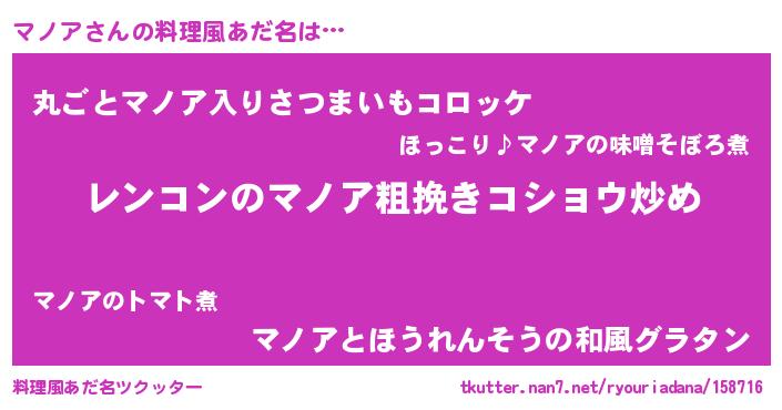 | 男性向けラノベタイトル風あだ名 | 『魔法科高校のマノア』『マノアの憂鬱』 |