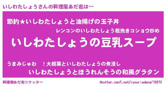| 女子向けラノベタイトル風あだ名 | 『いしわたしょうは平凡を望む』 |