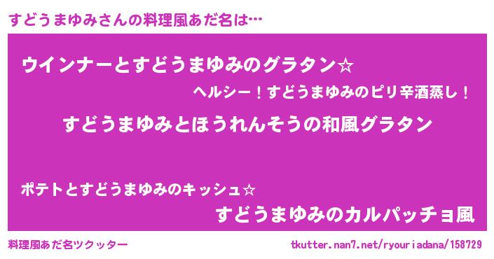 | 女子向けラノベタイトル風あだ名 | 『すどうまゆみの玉の輿計画!』 |