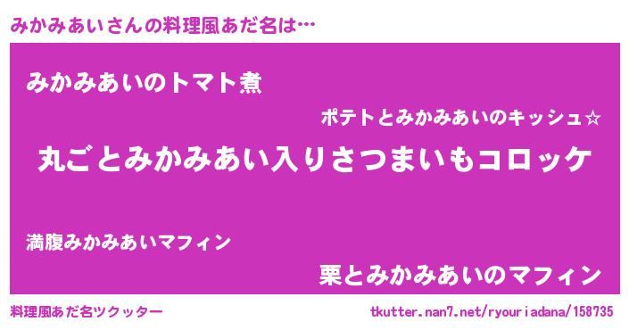 | 意味不明あだ名 | 『住所不定無職みかみあい(56歳)』 |