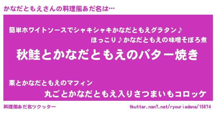 | 胡散臭い通販商品みたいなあだ名 | 『来世でも幸せになれる健康食品…その名も「かなだともえ」』 |