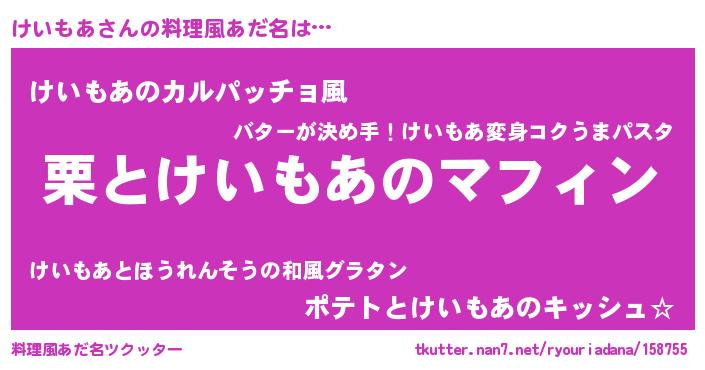 | 意味不明あだ名 | 『住所不定無職けいもあ(13歳)』 |