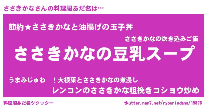 | ポケモン風あだ名 | 『ヒササキカナ』『ササチュウ』 |
