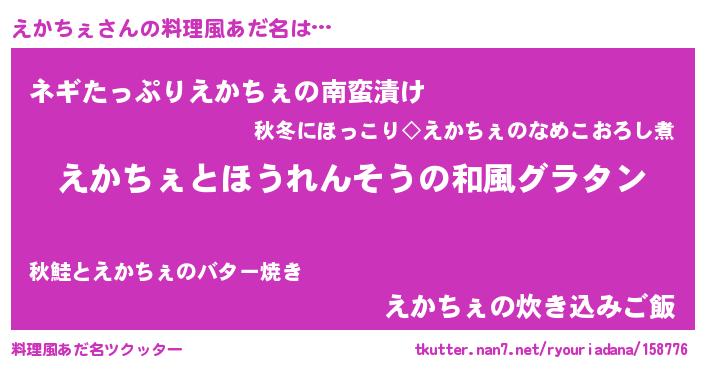 | 意味不明あだ名 | 『もやし科えかちぇ属』『自称えかちぇ』 |