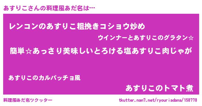 | 意味不明あだ名 | 『永久保存あすりこ』『自称あすりこ』 |