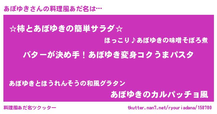 | 欧米人風あだ名 | 『ダニエルあぼゆき』『マイケルあぼゆき』 |