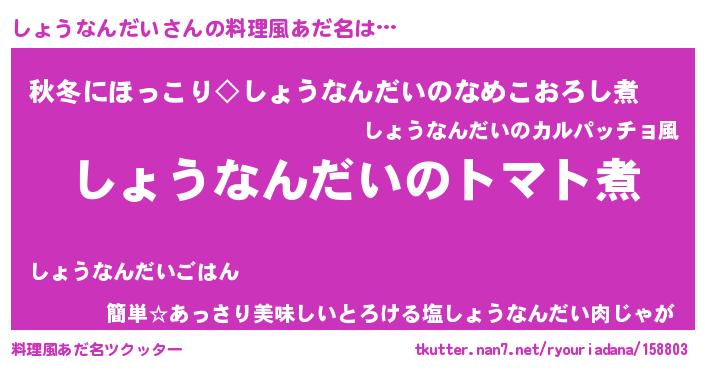 | ヘコむあだ名 | 『しょうなんだい(苦笑)』『しょを』 |