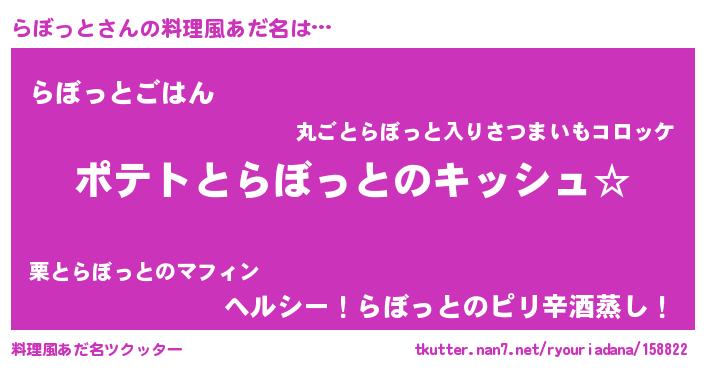 | 男性向けラノベタイトル風あだ名 | 『らぼっとの嫁は女の子じゃないと思った?』 |