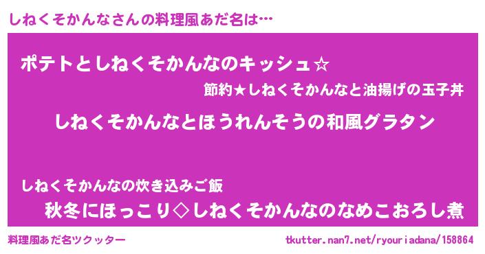 | ポケモン風あだ名 | 『シネキング』『ヒシネクソカンナ』 |