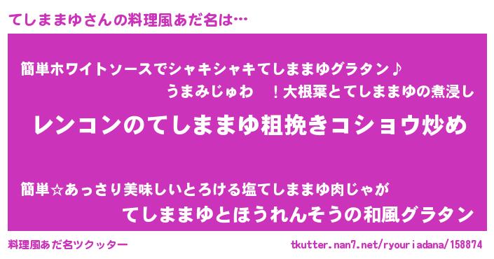 | 意味不明あだ名 | 『自称てしままゆ』『永久保存てしままゆ』 |