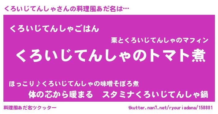| 男性向けラノベタイトル風あだ名 | 『おまえをオタクにしてやるから、俺をくろいじてんしゃにしてくれ! 』 |