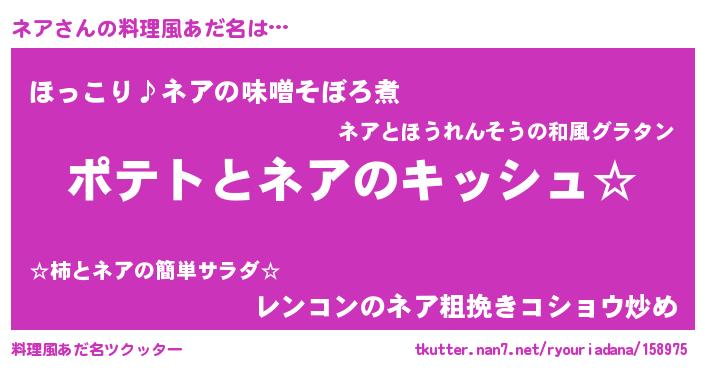 | ヘコむあだ名 | 『ネアを』『ネアふぇ~』『つくし』 |
