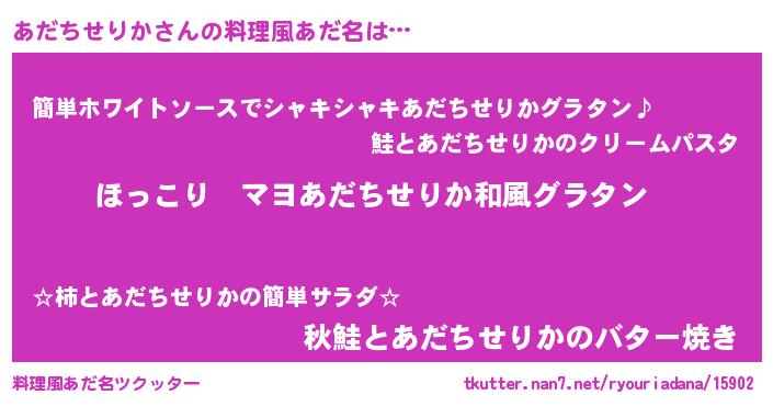 | 男性向けラノベタイトル風あだ名 | 『この素晴らしい世界にあだちせりかを!』 |