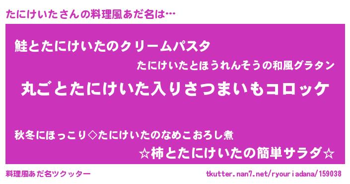| 意味不明あだ名 | 『住所不定無職たにけいた(9歳)』 |