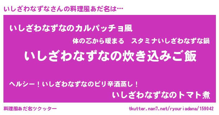 | 意味不明あだ名 | 『住所不定無職いしざわなずな(86歳)』 |
