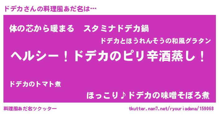 | 女子向けラノベタイトル風あだ名 | 『闇のドデカ』『ドデカの雑貨屋さん』 |