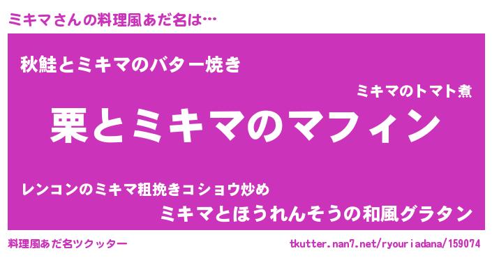 | 胡散臭い通販商品みたいなあだ名 | 『来世でも幸せになれる健康食品…その名も「ミキマ」』 |