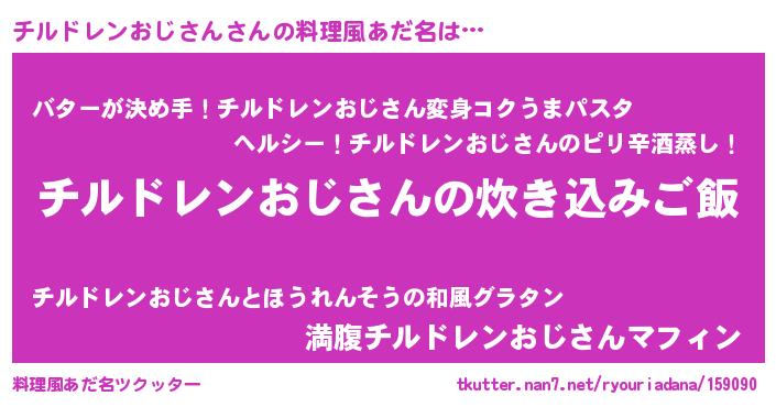| 男性向けラノベタイトル風あだ名 | 『冴えないチルドレンおじさんの育てかた』 |