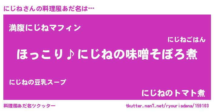 | 男性向けラノベタイトル風あだ名 | 『にじねの憂鬱』『ニジネスレイヤー』 |