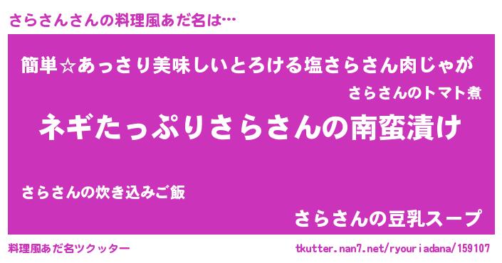 | 意味不明あだ名 | 『ペロリンさらさん』『永久保存さらさん』 |